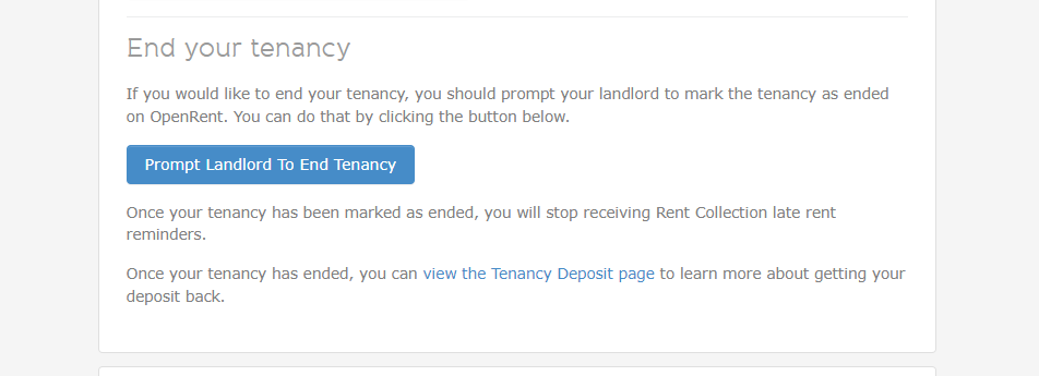 If your tenancy was set up using our Rent Now service, you can prompt the landlord to end your tenancy and begin the repayment process by selecting your tenancy here and using the blue button in the "End your tenancy" section.